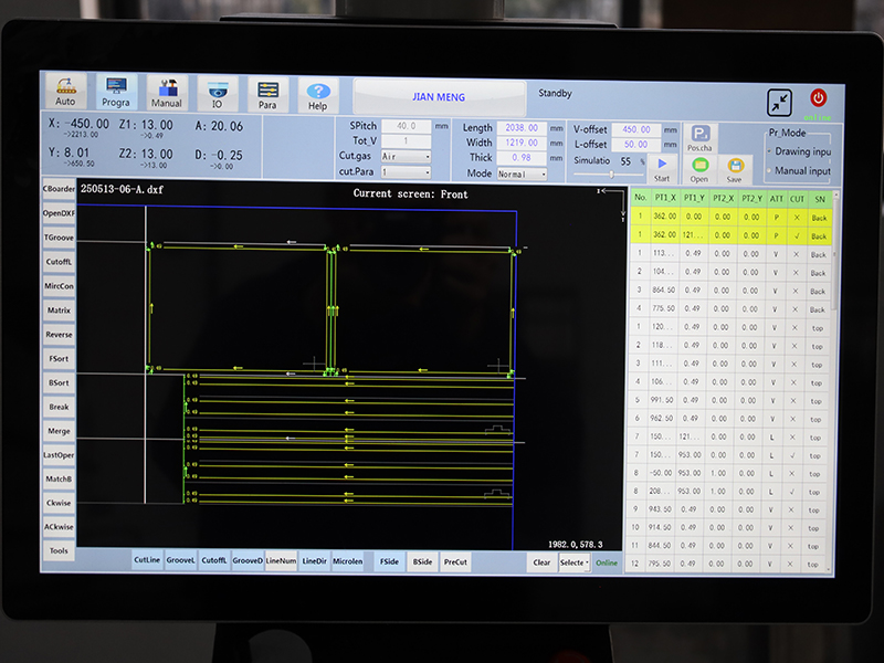 ភ្ជាប់ដោយផ្ទាល់ទៅនឹងគំនូរ CAD ប្រព័ន្ធនេះធ្វើឱ្យការរៀបចំផ្លូវដោយស្វ័យប្រវត្តិ, ប៉ា បន្ទាប់ពីបញ្ចូលប៉ារ៉ាម៉ែត្រតាមរយៈអ៊ិនធឺណិតមើលឃើញ វាធ្វើការដំណើរការសន្លឹកពេញលេញដោយស្វ័